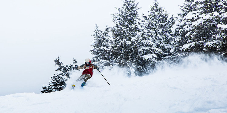 A skier enjoys powder at Jackson Hole, Wyoming. CC license by Flickr user Zach Dischner.