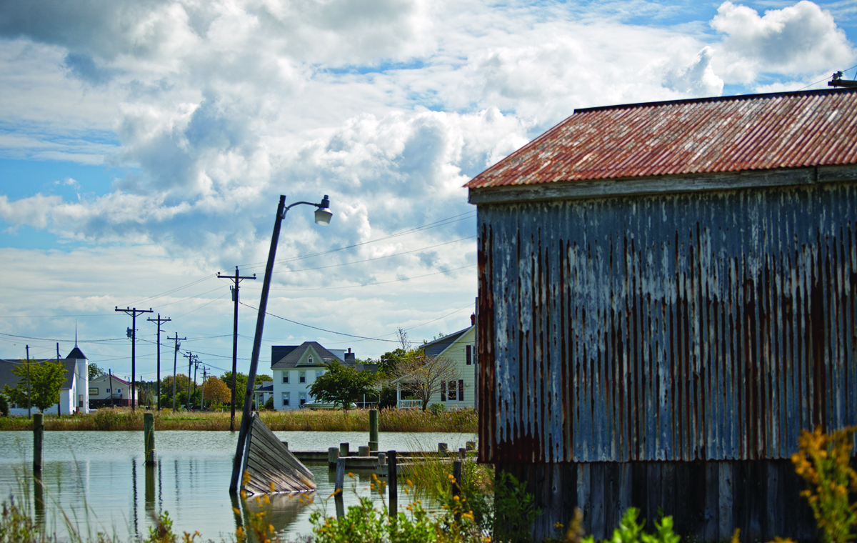 Some of the damage to homes and infrastructure on Hooper’s Island from Hurricane Isabel in 2003 has yet to be repaired. (Photo by Erica Goldman.)