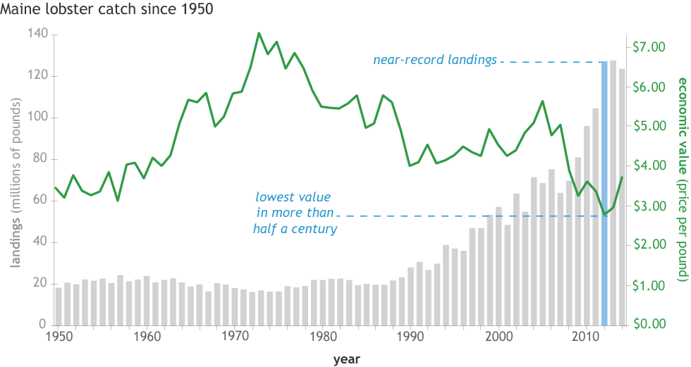 File name: lobster_landings_price_adjusted_1950-2014_lrg.png Original Resolution (pixels): 980 × 521 File Size: 49 KB (MIME Type: image/png) Date Published: March 25, 2016 View image full size Download file